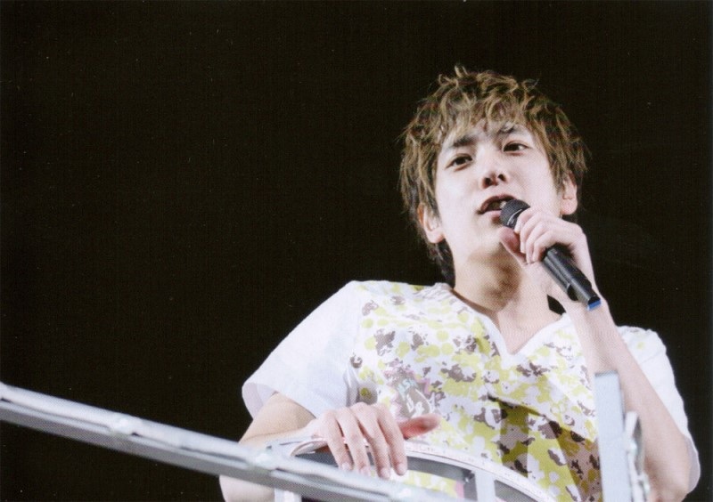 翔ちゃんソロで、メインステで、光る紙トンボをパチンコで飛ばすのに参加の二宮さん。